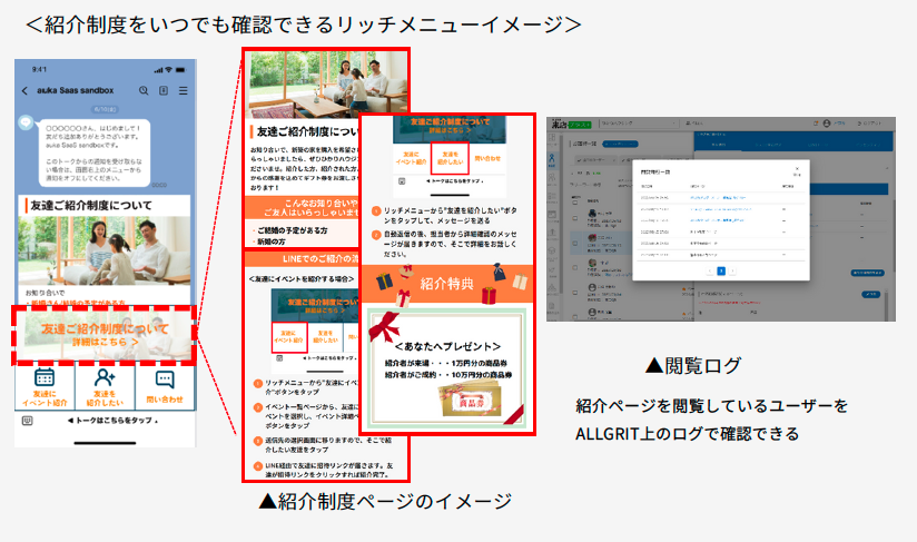 また、ALL GRITのログ機能を活用し、この紹介制度ページを閲覧しているOB様を特定しています。
