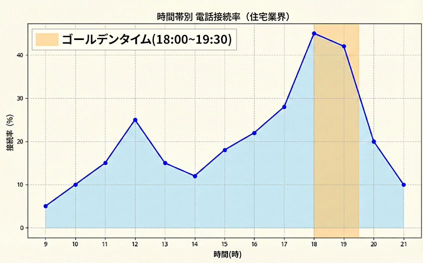 「21回コール」という圧倒的な行動量を支えるのは、闇雲な努力ではなく、データに基づいた「戦略的なタイミング」です。住宅営業において、顧客が最も電話に出やすく、かつ落ち着いて話ができる時間帯、すなわち「ゴールデンタイム」が存在します。